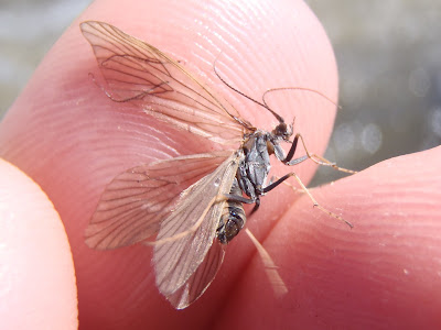 まず第一に、今日はニンフとストリーマーを全く使わなかった!!!午前中到着するなり、ミッジ(写真無し)、カディス、ベイティスがたくさん飛来していた!!
